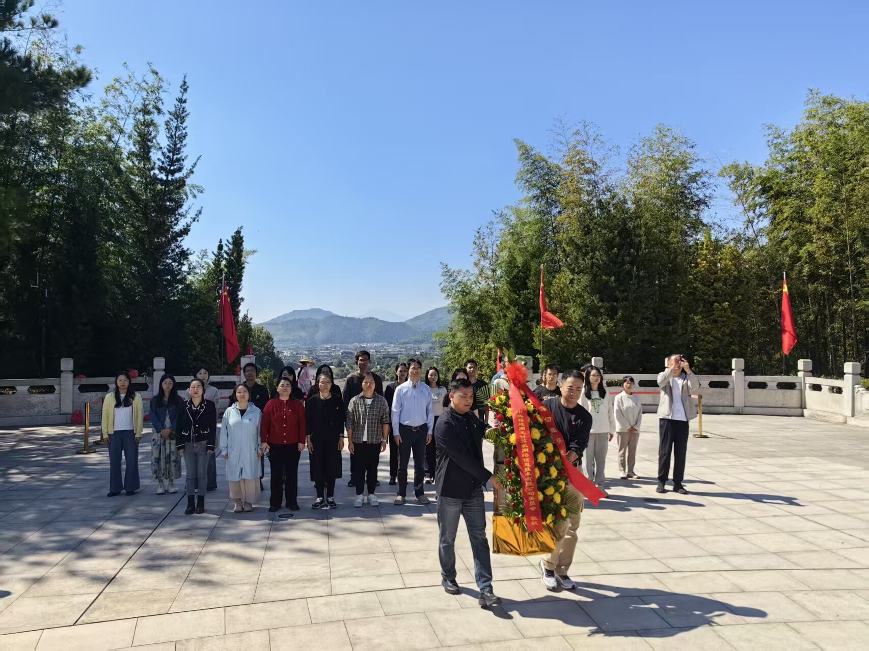 第二天,党员同志们深入古田核心革命遗址开展学习活动。在《星星之火 可以燎原》写作旧址协成店,斑驳的墙壁与简朴的书桌见证了毛泽东同志在革命低潮期的思想光芒。在古田会议纪念馆前,党委委员毕灵芝同志带领全体党员面向党旗重温入党誓词,誓言回荡山谷,彰显传承红色基因的决心。在古田会议会址,青石板路、革命标语与生动的解说仿佛将党员们带回了1929年会议现场。离开会址,党员们前往毛主席纪念园,向毛主席雕像敬献花篮、肃立鞠躬,缅怀伟人贡献。